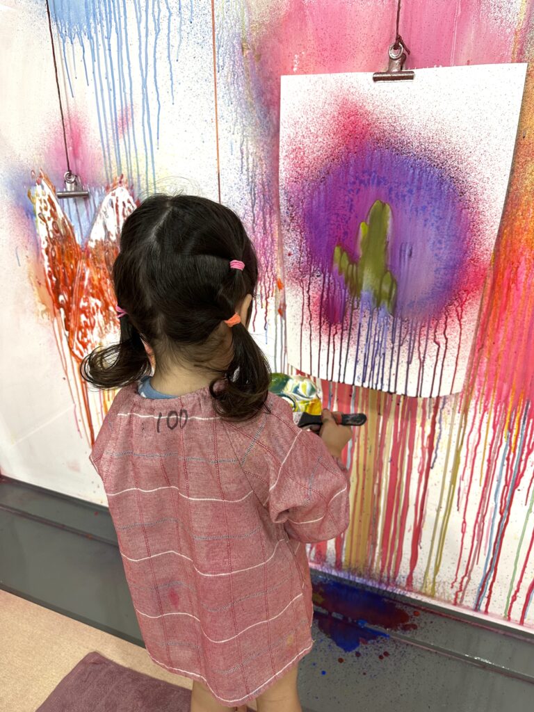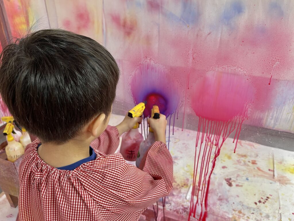 スプレーや筆などを使って様々な体験ができます ♪