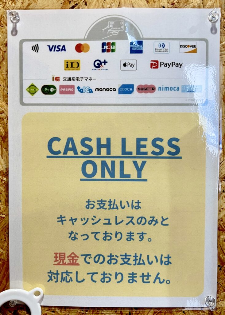 キャッシュレスのみ(クレジット、交通系IC、ペイペイ、クイックペイ、ID)