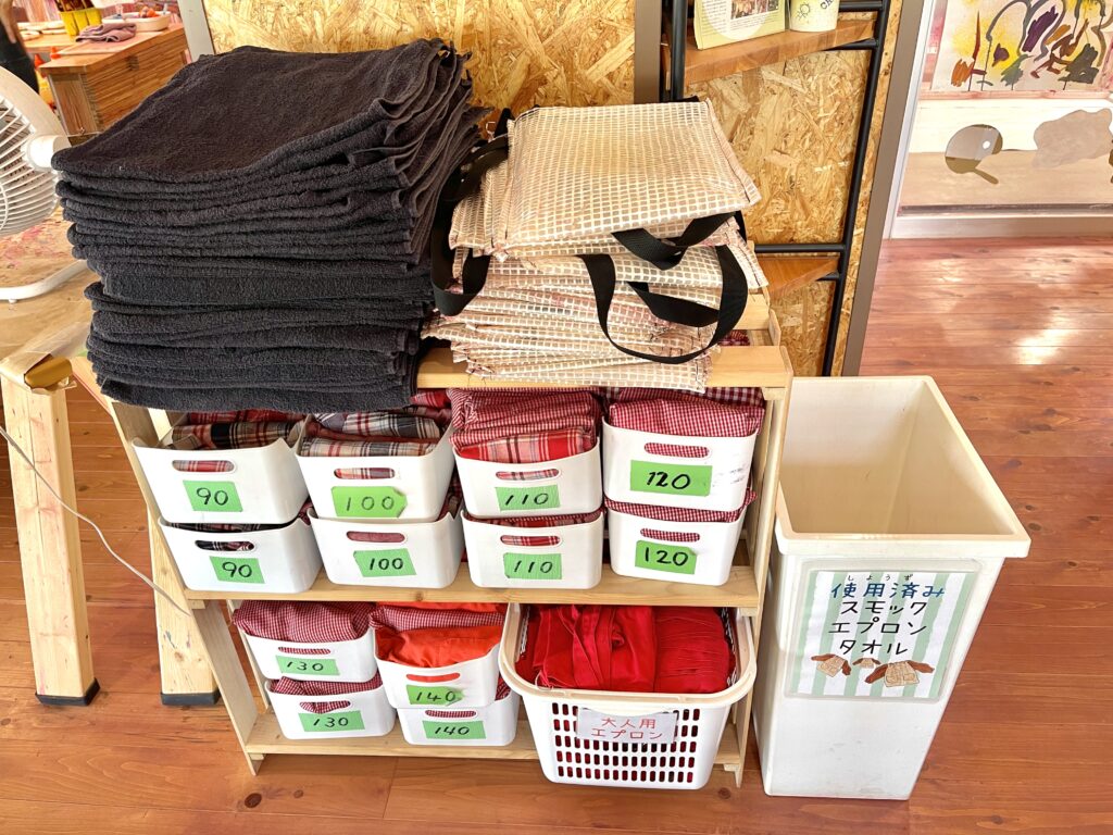 受付を済ませて、すぐ横にあるここでエプロンなどを借ります。
