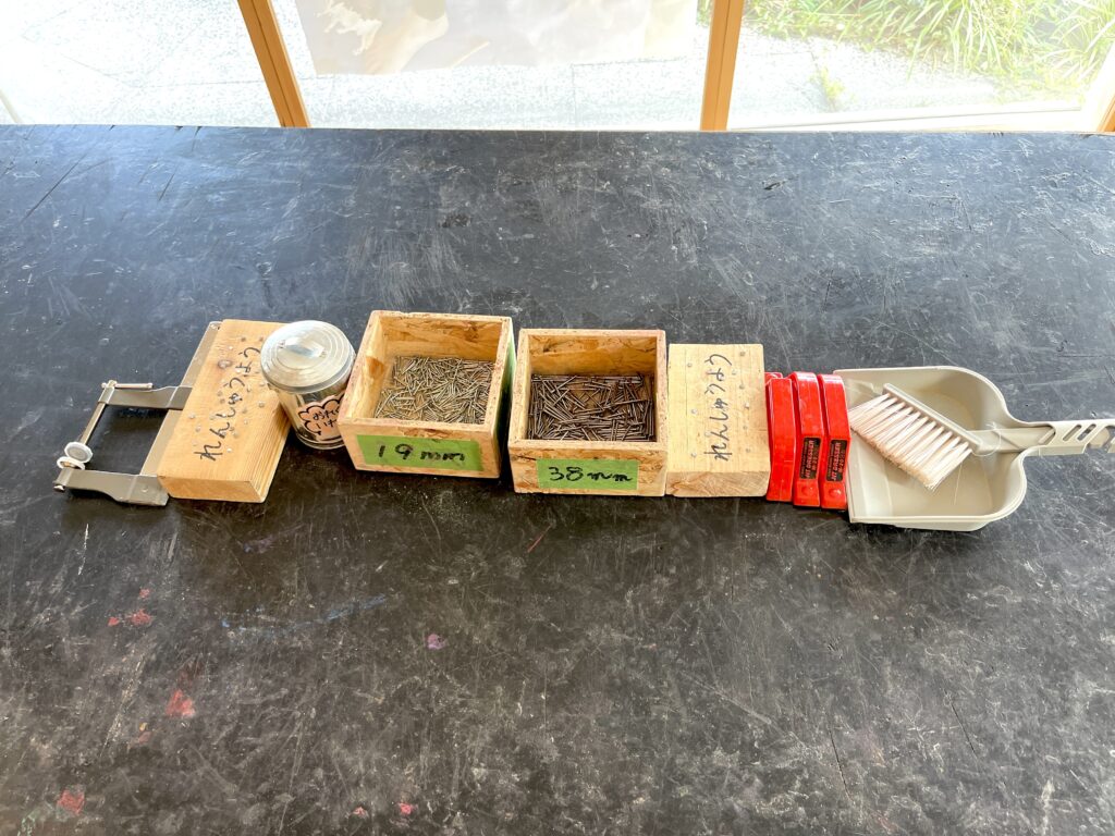 作業台の上には釘などが置いてあります。