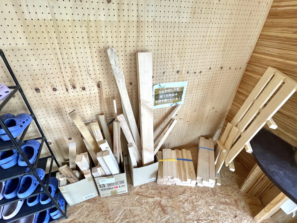 木材がいろいろ置いてあり自由に使えます。