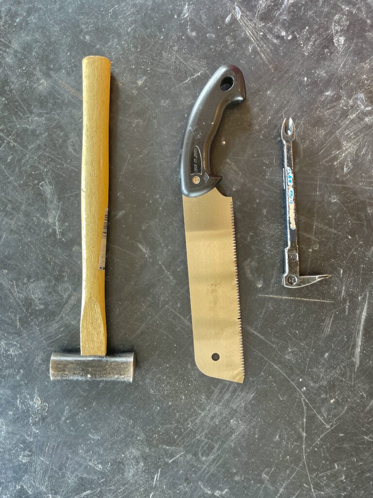 ハンマー、ノコギリ、釘抜きが入っていました。