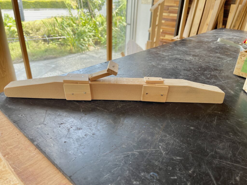 木を切るのと釘を最後まで打ち込むのが意外と大変で、実際はここまで作るのに1時間くらいかかりました。