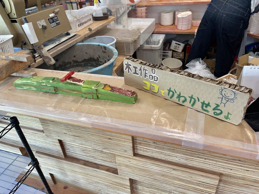 木工作品は受付のところで乾燥させることができます。