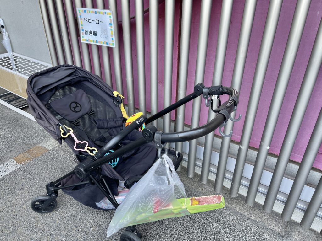 ベビーカーは入り口のところに置くとのこと。