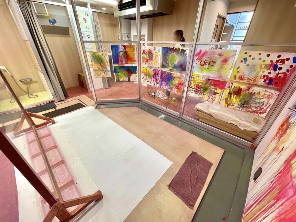 さらに奥の、アクリル板があるアトリエの様子。