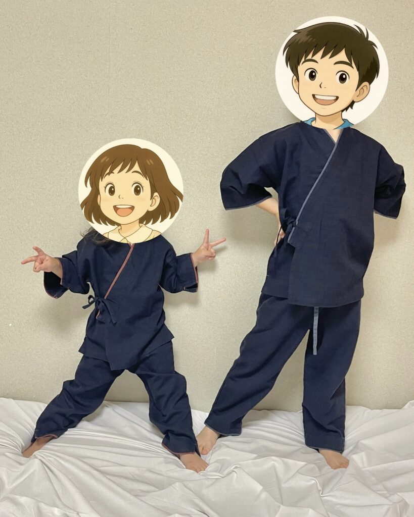 館内着を着てみると子供たちは着心地が良いと言っていました ♪
