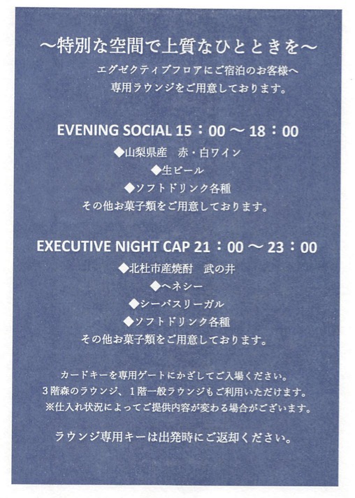 エグゼクティブラウンジの案内もいただきました。