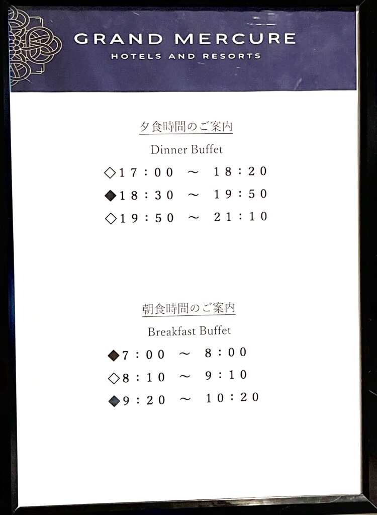 夕食と朝食を3つの時間帯から1つ選ぶとのこと。