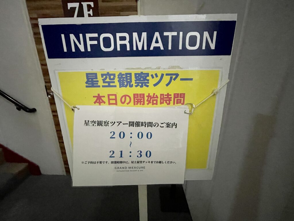 この日は中止でしたが、星空観賞会が催行されるときだけ使用できるのかもしれません。