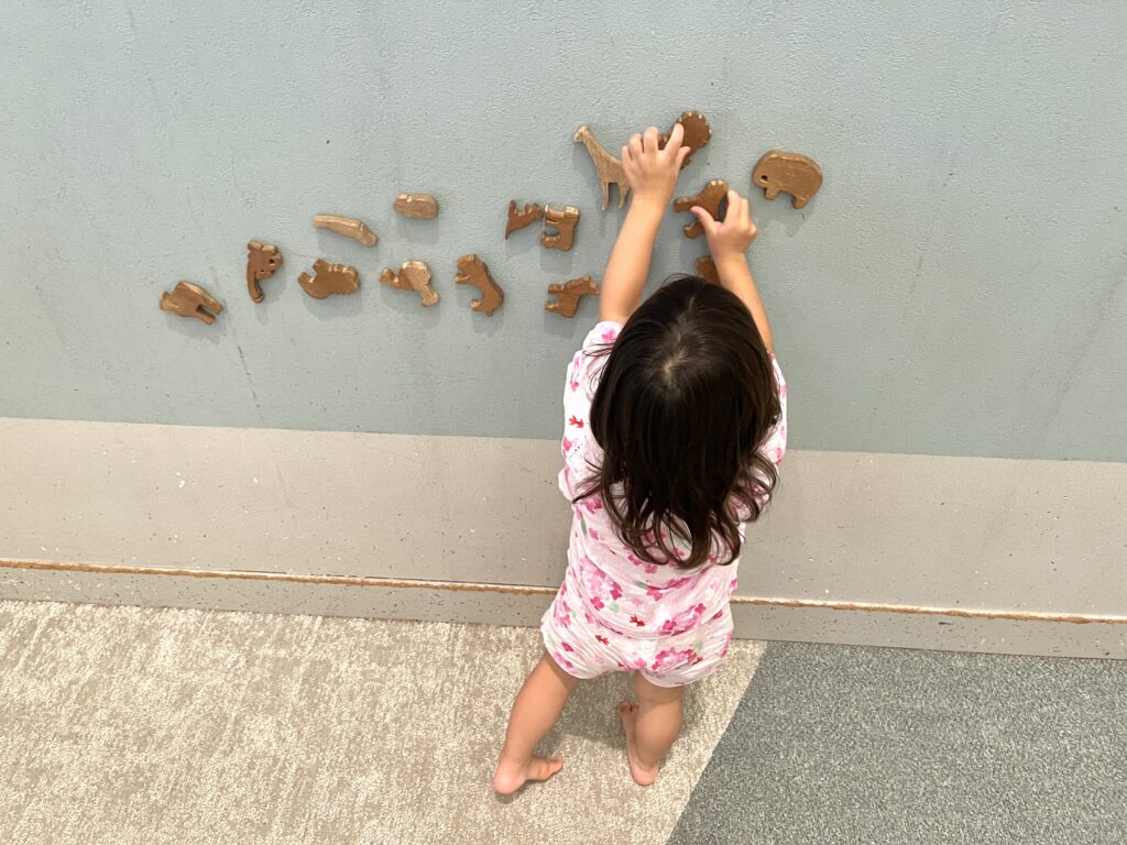 マグネットで壁に貼って遊べるものもありました。