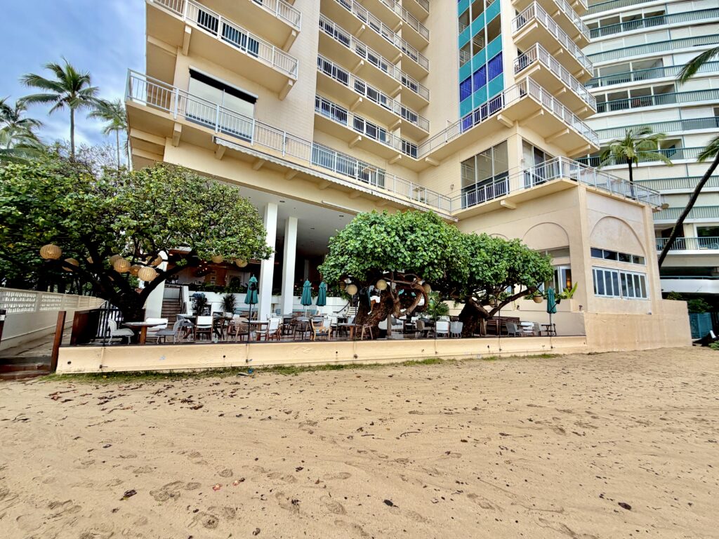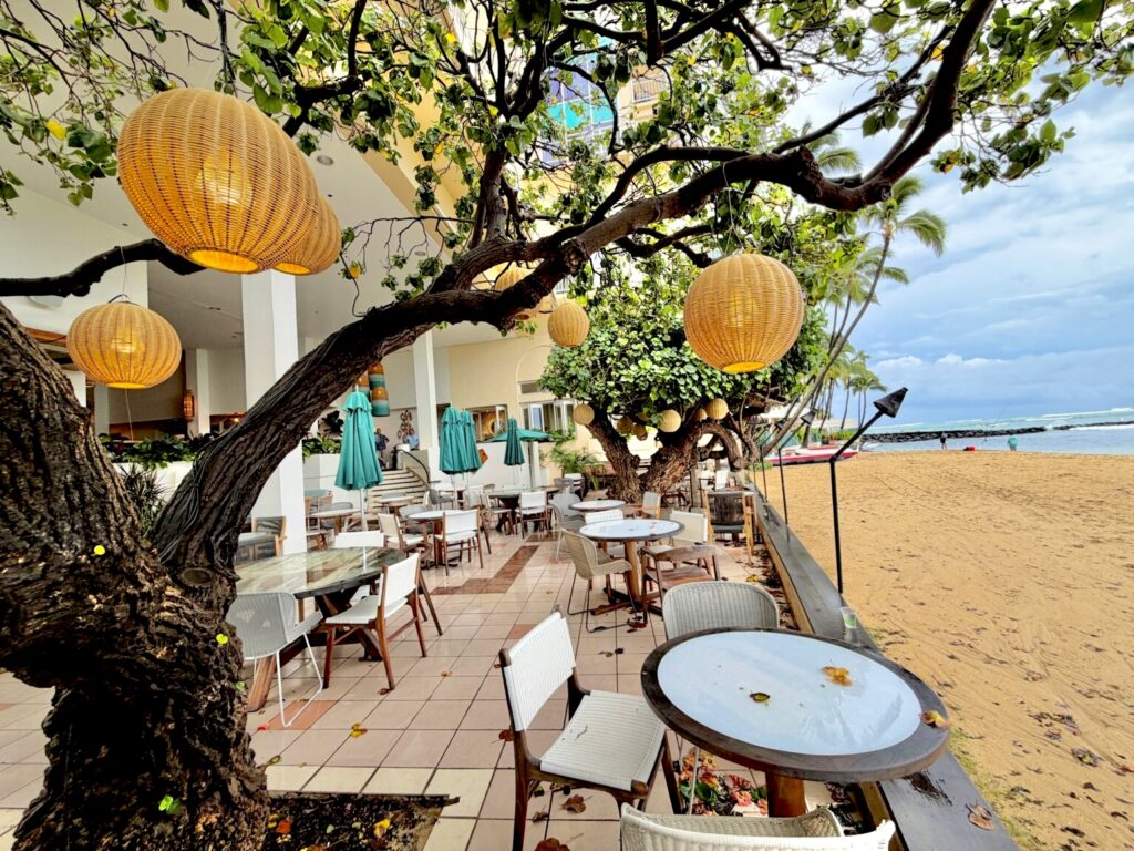 賑やかなワイキキ中心部から少し離れたカイマナビーチホテル(旧ニューオータニ・カイマナ・ビーチ・ホテル)1階にあり、同じワイキキでも雰囲気はまるで別世界。