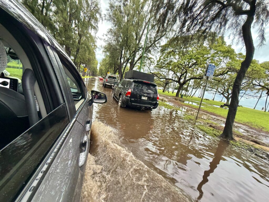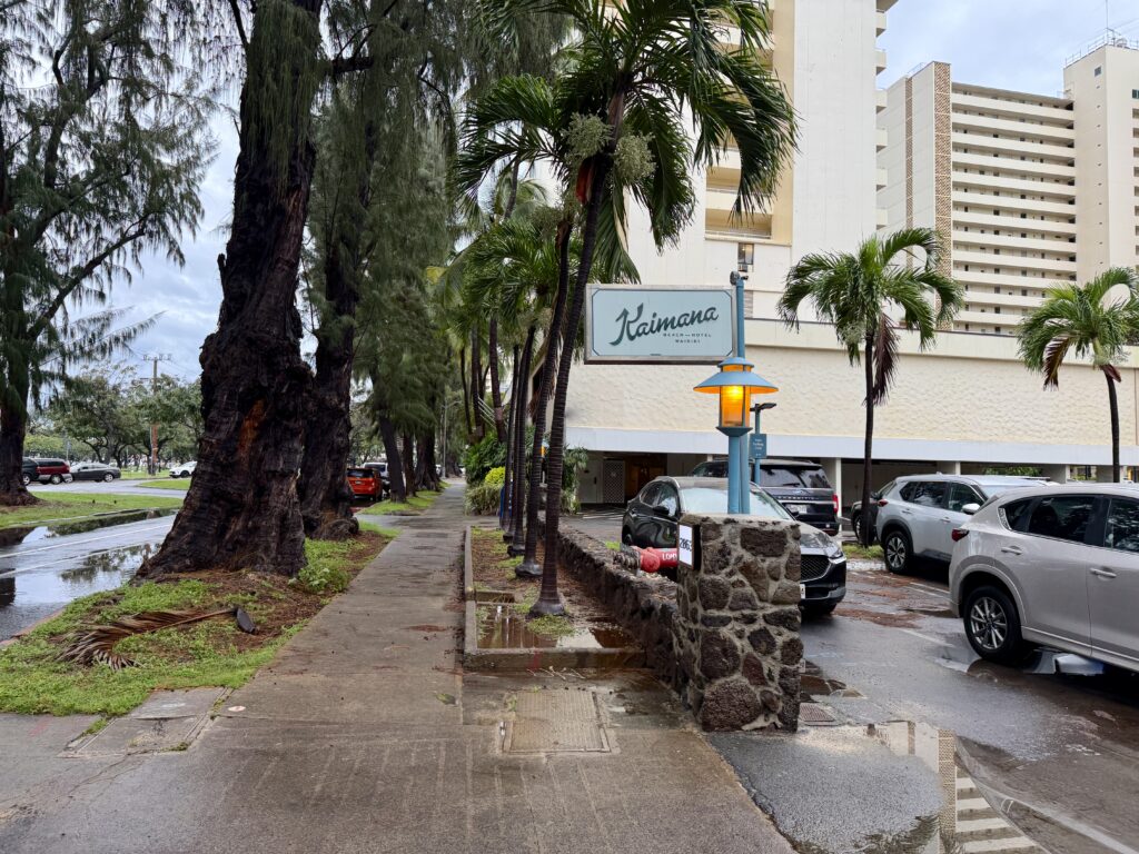 今回の滞在中でニュースにもなったコナ低気圧による大雨の影響で、道路が一部冠水していました。