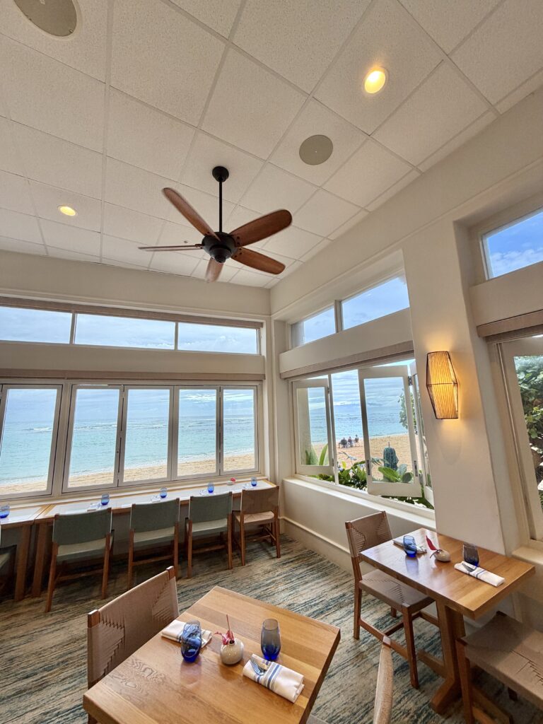 まず印象的なのはロケーション。目の前に広がるのは、透明度の高い海と落ち着いたビーチ。いわゆる観光地ど真ん中のビーチとは違い、静かでゆったりとした時間が流れています。朝の時間帯は特に空気が気持ちよく、「ハワイ 朝食 おすすめ」「ワイキキ ブランチ 人気」の検索で上位に出てくる有名店。