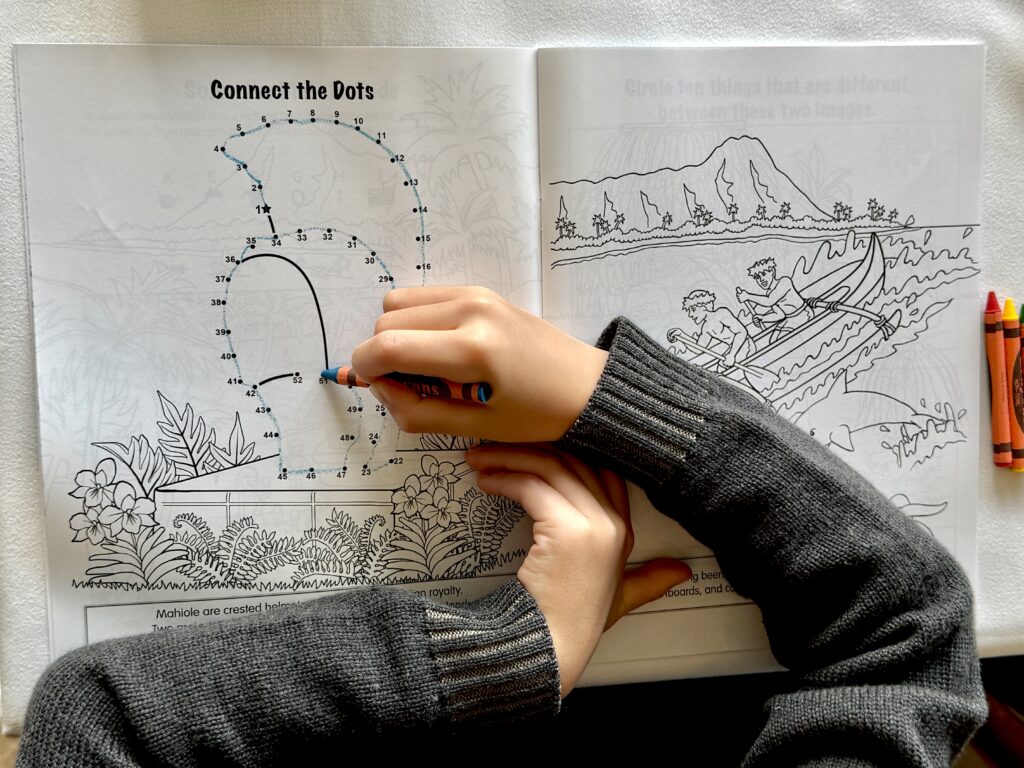 テーブルには子供用のお絵描きセットが用意されていました。