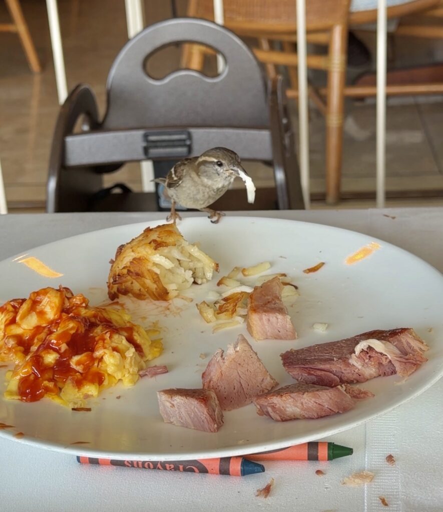 ちょっと目を離した隙に食べ物をつつかれるのでご注意を!