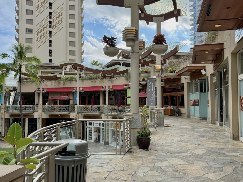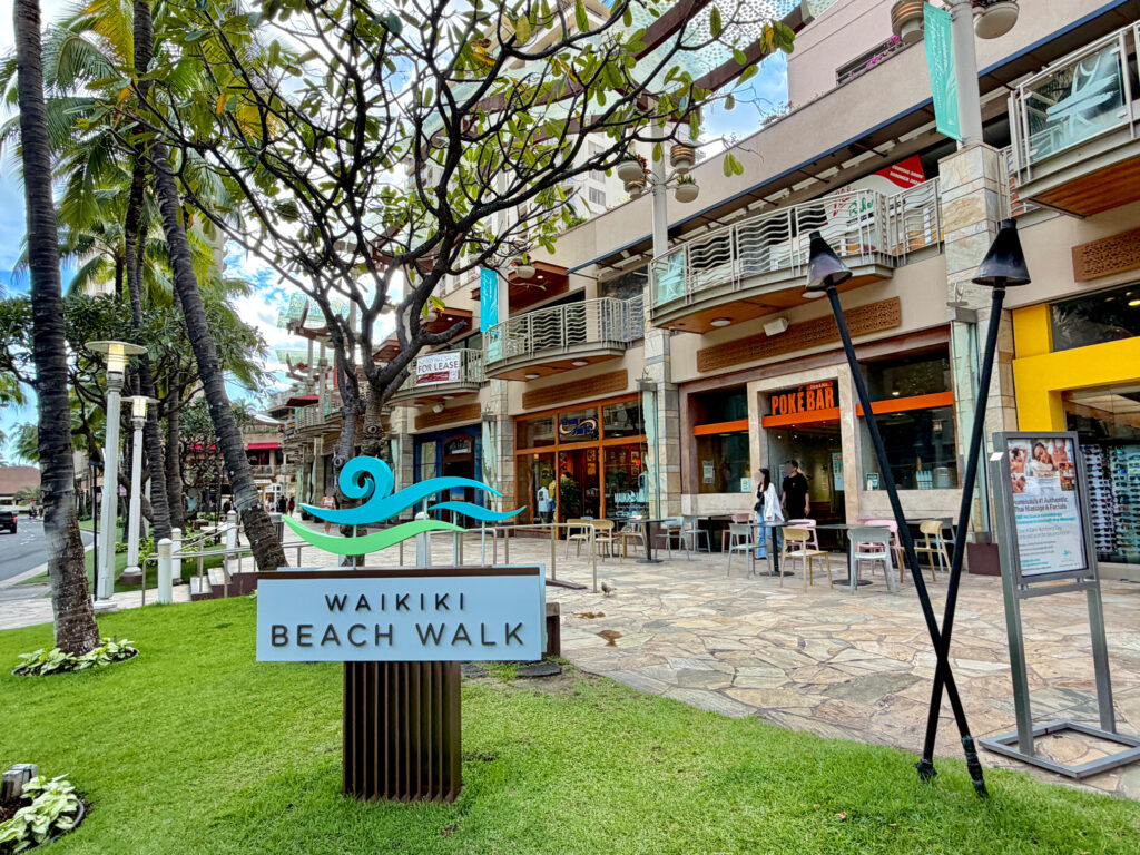 ワイキキの中心部、ビーチウォークの2階にあります。