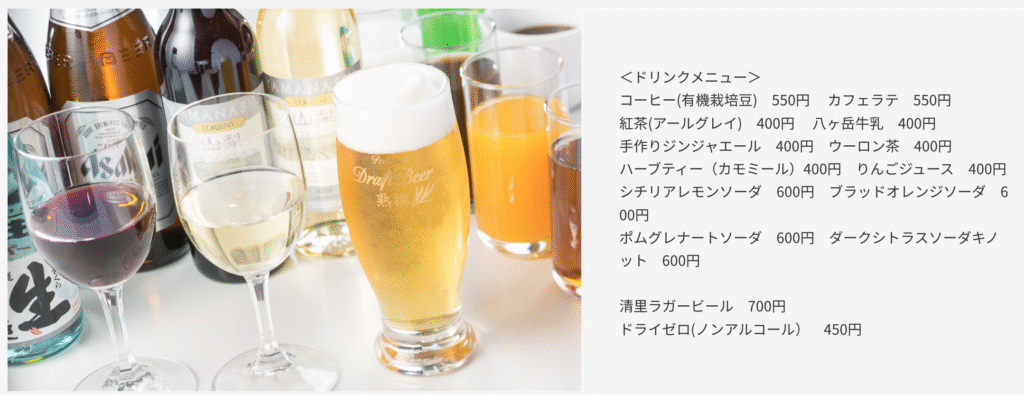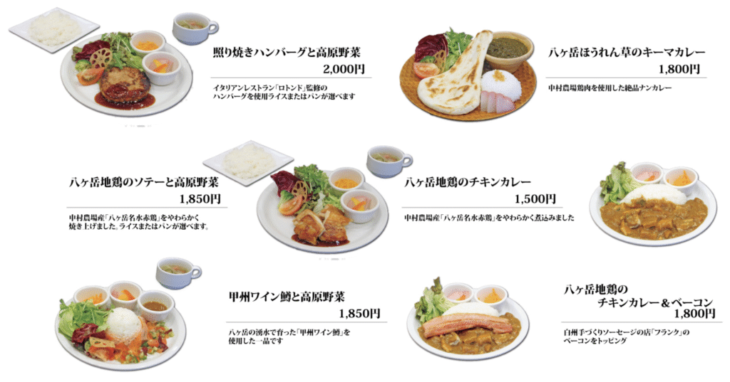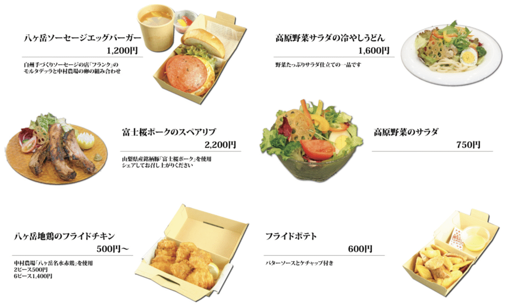 地元小淵沢や東京の広尾で展開をする「ブラッチェリーア ロトンド」の本格的イタリアンをベースにした1プレートメニューやタパス、スイーツが提供されているとのこと。