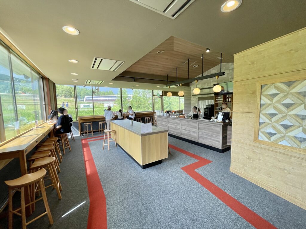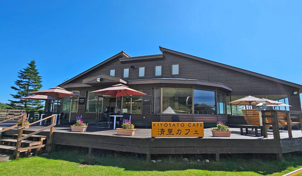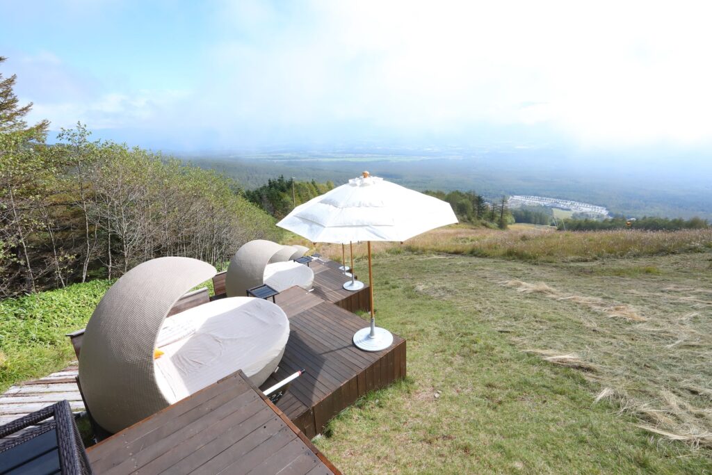 リフトから降り、さらに階段を上った先にはビーチソファやカウンターが配された第二展望デッキと、清里高原で最も高い位置にあるカフェ「カフェ1920」が。富士山や野辺山高原を望む、贅沢なビューポイントです。