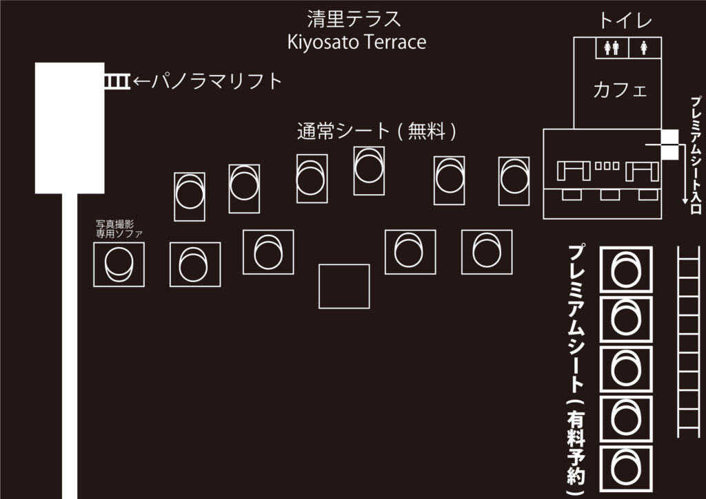 全5席の「プレミアムシート」は、清里テラスで予約が可能な有料エリア。
