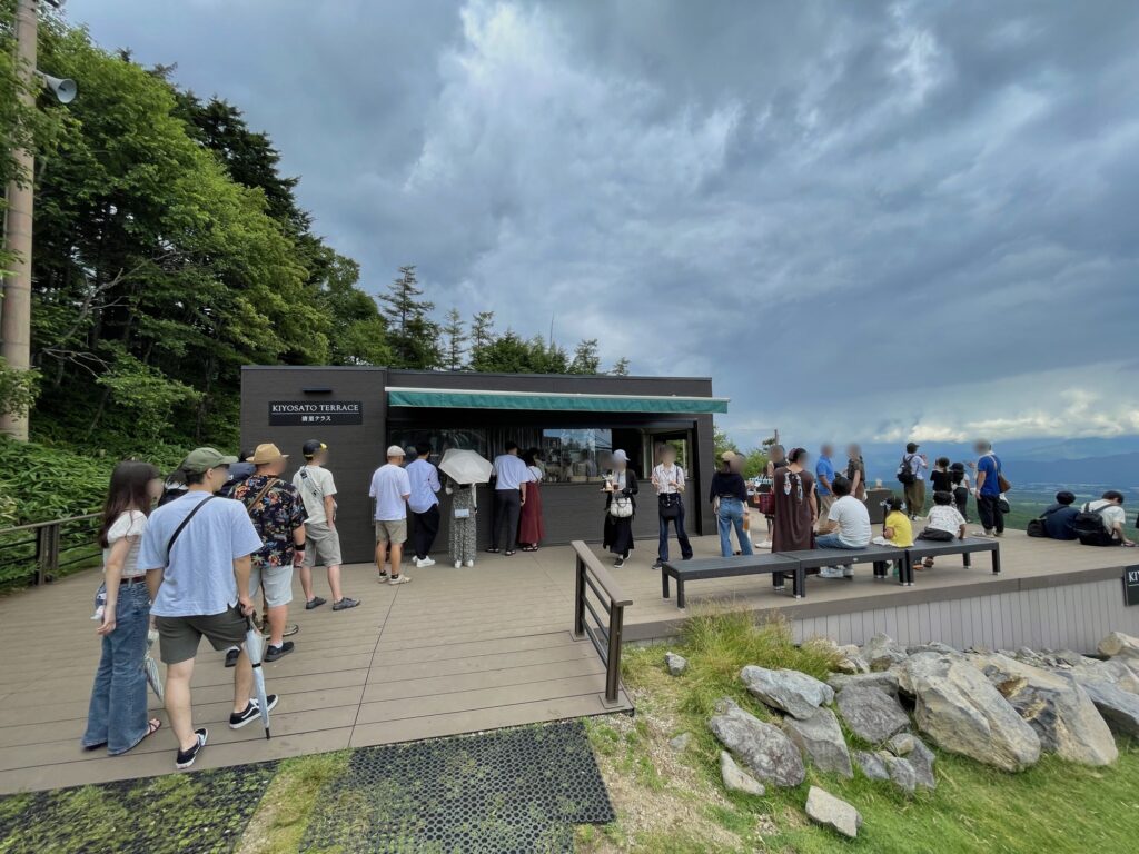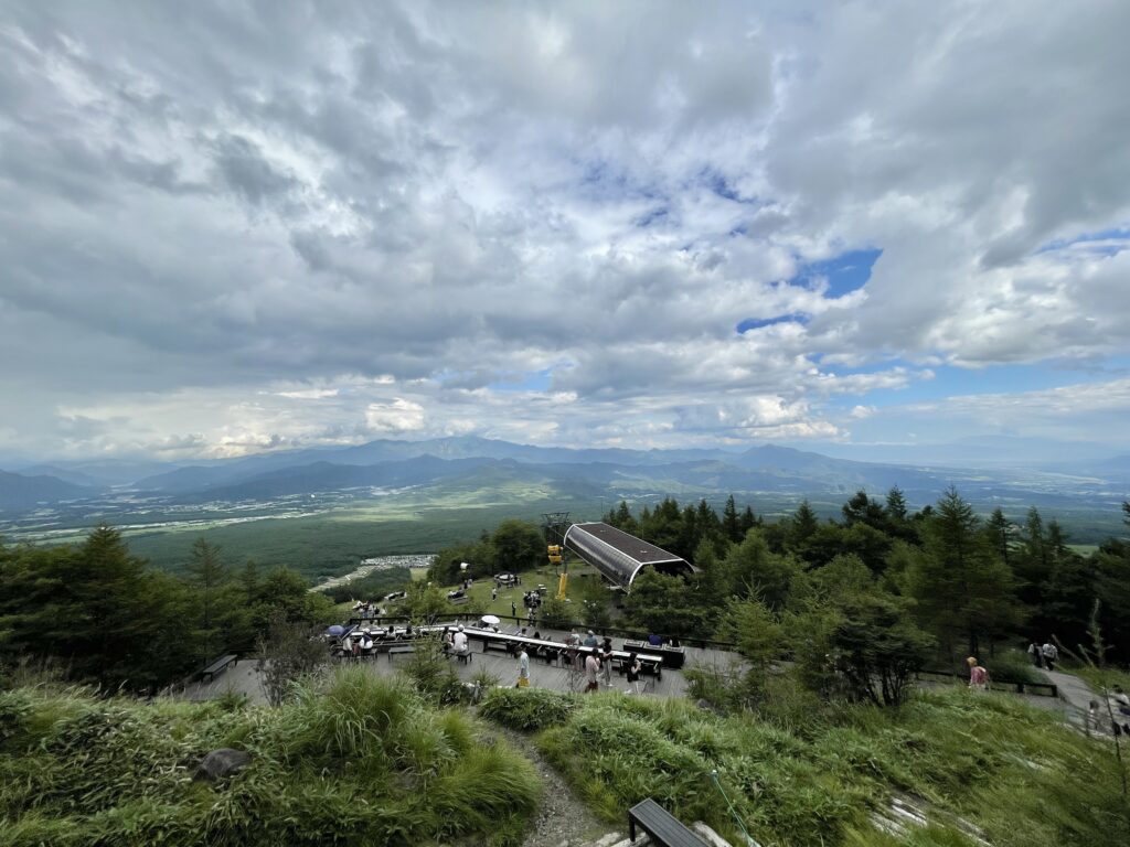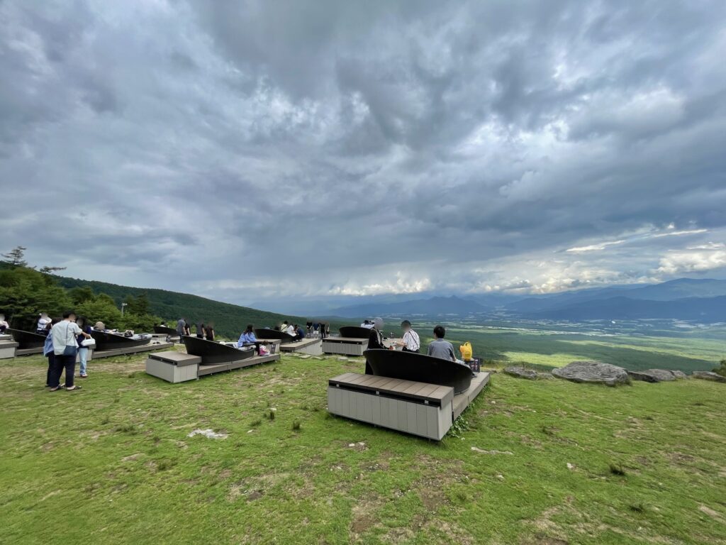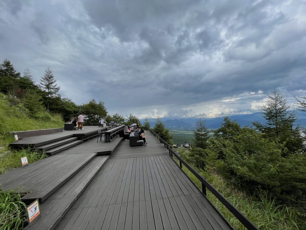 清里テラスがあるのは、標高1900メートルに達する山頂エリアで、眼下には富士山や野辺山高原の絶景が広がります。