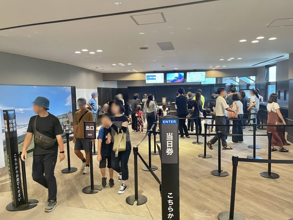 駐車場にあるこのゲートの先にエスカレーターがあり、それをのぼるとチケット売り場に到着。