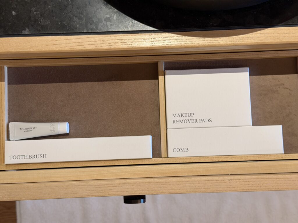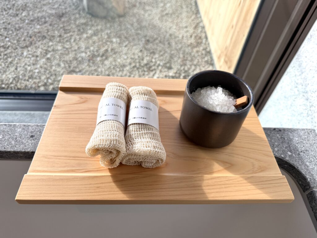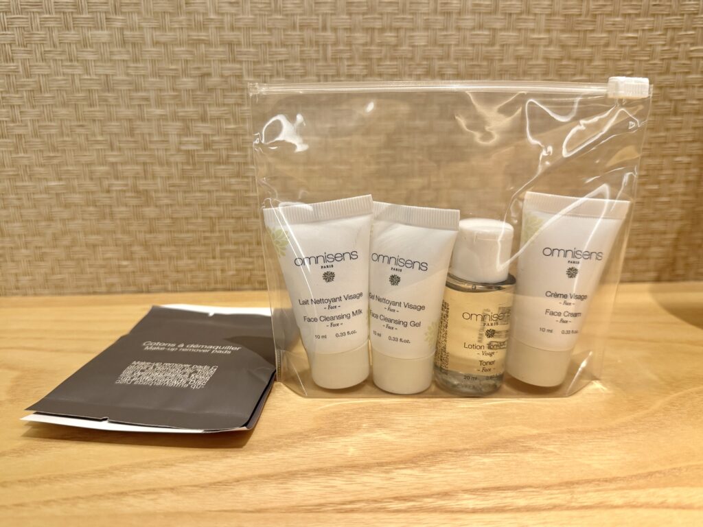 スパのアメニティは「バスタオル、フェイスタオル、ボディウォッシュタオル、ヘアドライヤー、保湿化粧水、美容液、ハンド&ボディローション、洗顔石鹸、シャンプー、コンディショナー、ボディソープ、くし、歯ブラシ、歯磨き粉、マウスウォッシュ、ヘアゴム、シャワーキャップ、コットン、綿棒、シェーバー、シェービングフォーム」