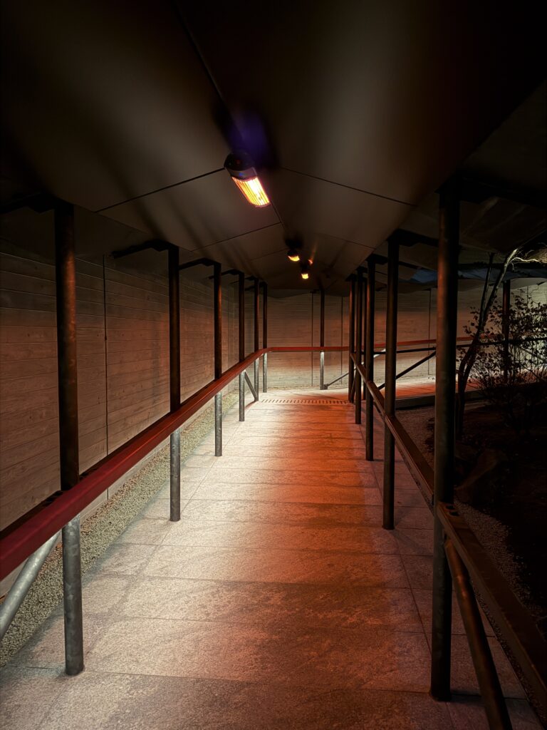 連絡通路は屋外なので、寒さ対策として天井にヒーターがついていました。