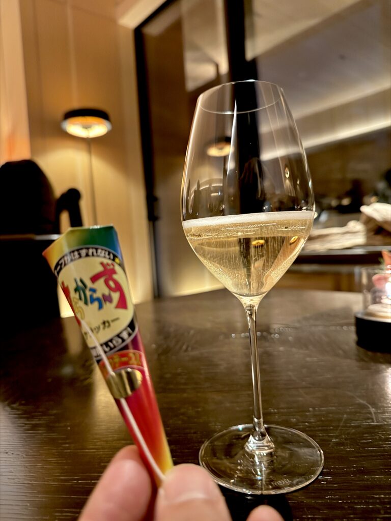 23:45に無料でシャンパンとクラッカーが配られ、カウントダウンが盛り上がりました ♪