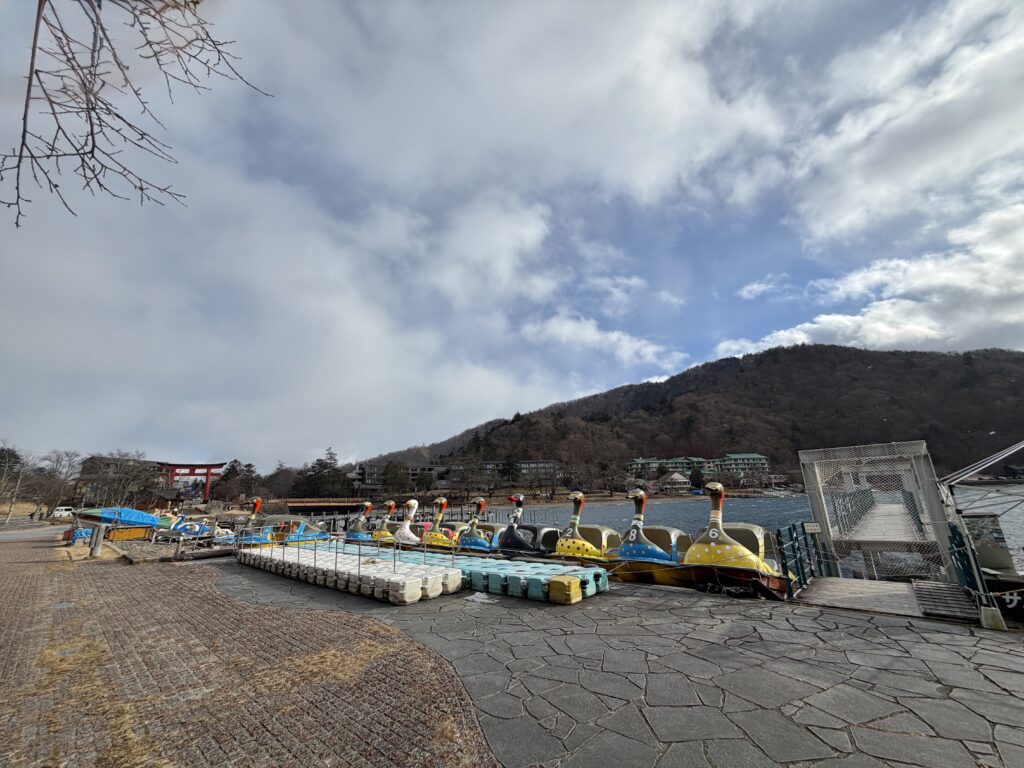 中禅寺湖のボートは冬季は休業中とのことでした。