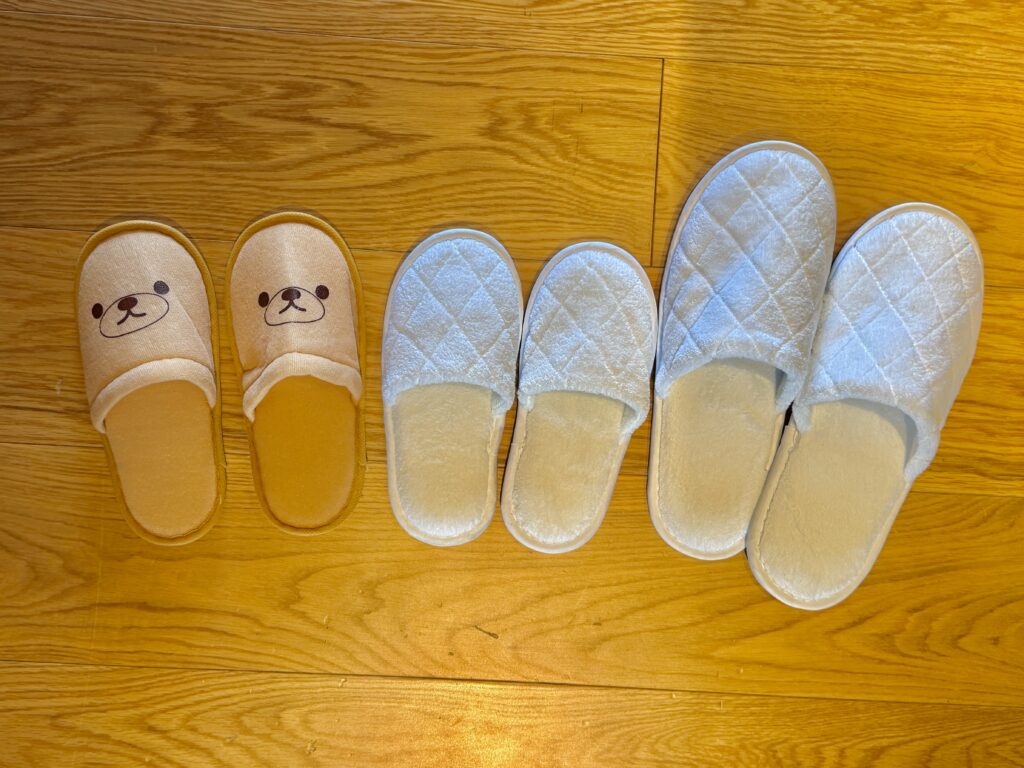 左2つは子供用のスリッパ、右は大人用のスリッパ