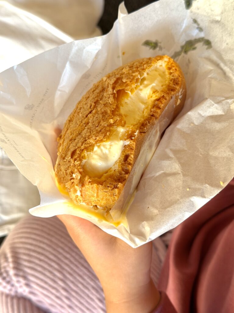 なかなか伝わらないかもしれませんが、クリームがた〜っぷりで、重さが体感で500mlのペットボトルくらいありました。